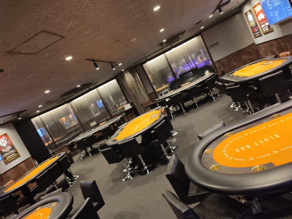 | 備考 | 10年前、大阪でポーカー好きが集まる有名なアミューズメントバーといえばBLUFF BARでした。大阪に遊びに行くたびに、ついつい足を運んでしまったものです。 店内は落ち着いた雰囲気で、常連客が多く、独特のコミュニティが形成されていました。(まあ、いろいろと問題もあったけれど……それもまた一興。) 今となっては懐かしい思い出ですが、大阪のポーカーを語る上でBLUFF BARは外せない存在でしたね。 |